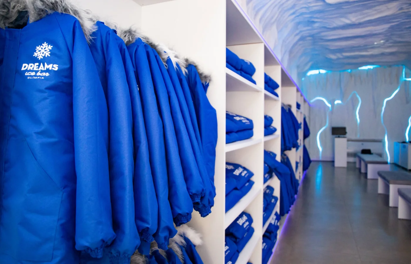 A temperatura no interior do bar é de -10°C. Fornecem casacos e luvas especiais para que você possa aproveitar essa experiência congelante com conforto.